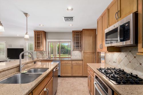 Spacious Single-Level Living in Desirable Moon Valley! Welcome to this beautifully updated single-level home offering 4 bedrooms plus an office, 3.5 bathrooms, and nearly 3,000 sq. ft. of thoughtfully designed living space that feels even larger. Situated on a generous lot, this property is ideal for both relaxation and recreation. Enjoy your own private sport court—perfect for pickleball, basketball, or casual play—and an abundance of mature citrus and fruit trees providing shade and fresh produce year-round. Inside, the updated kitchen shines with granite countertops, stainless steel appliances, and a built-in Sub-Zero refrigerator. The home offers ample storage throughout, newer AC, and a floor plan designed for comfortable everyday living and entertaining. Step outside to the charming front courtyard, complete with a pergola for shade and a tranquil water fountainan inviting space to relax or welcome guests. Located near Moon Valley Country Club, residents can take advantage of affordable membership options featuring golf, tennis, swimming, fitness facilities, restaurants, and more.