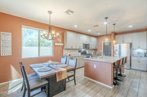 HUGE LOT - AMAZING PRICE!! Welcome to the ever-popular Presley model, boasting beautiful curb appeal and ideally situated next to a greenbelt for added privacy and charm. Step through the inviting foyer into a versatile flex room—perfect for a guest suite, workout space, or additional sitting area. This unique floor plan also features a convenient office nook with a built-in desk, ideal for remote work or study. The open family room and remodeled kitchen blend warmth and style with sleek quartz countertops, 42' cabinets and designer finishes. Retreat to the primary suite with its oversized walk-in shower, custom closet, and blackout shades for ultimate comfort. Enjoy a coated driveway, epoxy garage floors, updated lighting and ceiling fans, along with fresh interior and exterior paint. oversized, low-maintenance backyard is an entertainer's dream with a built-in BBQ kitchen, perfect for hosting gatherings year-round. This Presley model offers the perfect mix of function, upgrades, and lifestyle don't miss your chance to call it home!
