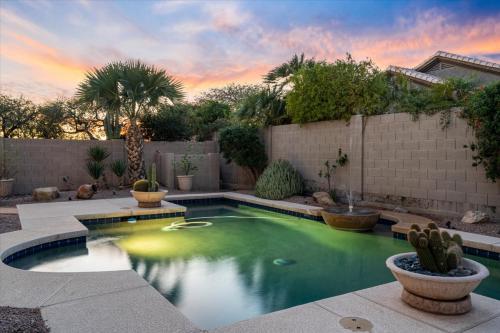 Enjoy Arizona living year-round with a sparkling PebbleTec pool, expansive covered patio, and plenty of room to lounge or host under the desert sky.
