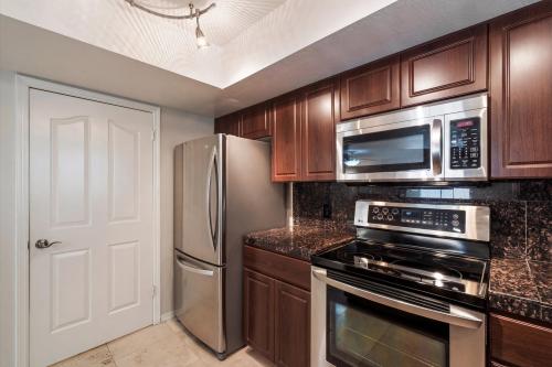 Seller Offering 2% Credit for Rate Buydown, Closing Costs, or HOA Pre-Payment! Rare 2BR 'former model' end unit steps from the heated pool. Walk to Biltmore Resort, world-class golf, and luxury dining. This light and bright home features recent updates: fresh paint, premium carpet, and updated electrical/plumbing. Both bedrooms boast walk-in closets and spacious layouts. Enjoy a remodeled bath with quartz counters and an oversized walk-in shower with a bench. All-inclusive HOA covers gas, water, sewer, trash, pest control, roof, and exterior maintenance. Gated community with assigned underground parking right across from the elevator. Resort living with total peace of mind! INTERIOR UPDATES New paint - all walls - 2025 New carpet with upgraded padding - 2025 Updated electrical outlets and switches - 2025 Blackout curtains in bedrooms Newer mirrored closet doors Updated fans and lighting throughout PLUMBING & MECHANICAL New water shutoff valves on every water line - 2025 Water Heater - 2024 Gently-used A/C - most of my summers gone KITCHEN Stainless appliances - refrigerator, microware, stove, dishwasher Tile granite counters in kitchen Newer kitchen faucet Matching cabinets throughout including laundry room BATHROOM Quartz bath counter Newer Pfister bathroom faucets Upgraded over-sized walk-in shower with glass doors, seat, cutout Newer elongated toilet - height FLOORING New carpet with upgraded padding - 2025 Newer Travertine tile flooring LAUNDRY Matching washer and dryer FIREPLACE Gas fireplace (HOA pays gas) OUTDOOR FEATURES Slate tiled patio Overlooks pool and barbeque PARKING & LOCATION Garage parking spot directly across from elevator Great end unit with no neighbors on west side Convenient to mailbox and fitness center
