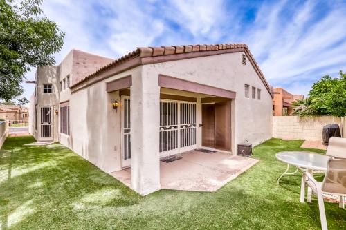 Welcome to resort-style living in the guard-gated 55+ community of Sun Village! This beautifully maintained 2-bedroom + den home features an open-concept floor plan designed for comfort and easy entertaining. The spacious primary suite offers a rare private exterior entrance to the covered patio and fenced backyard--perfect for enjoying Arizona's beautiful mornings and evenings. Sun Village offers an unmatched active lifestyle with an array of amenities, including a scenic golf course, sparkling pools, tennis and pickleball courts, lakes, and a vibrant social calendar filled with clubs, events, and activities.