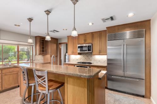 Spacious Single-Level Living in Desirable Moon Valley! Welcome to this beautifully updated single-level home offering 4 bedrooms plus an office, 3.5 bathrooms, and nearly 3,000 sq. ft. of thoughtfully designed living space that feels even larger. Situated on a generous lot, this property is ideal for both relaxation and recreation. Enjoy your own private sport court—perfect for pickleball, basketball, or casual play—and an abundance of mature citrus and fruit trees providing shade and fresh produce year-round. Inside, the updated kitchen shines with granite countertops, stainless steel appliances, and a built-in Sub-Zero refrigerator. The home offers ample storage throughout, newer AC, and a floor plan designed for comfortable everyday living and entertaining. Step outside to the charming front courtyard, complete with a pergola for shade and a tranquil water fountainan inviting space to relax or welcome guests. Located near Moon Valley Country Club, residents can take advantage of affordable membership options featuring golf, tennis, swimming, fitness facilities, restaurants, and more.